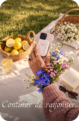 Plonge dans un univers inspiré des champs en fleurs, des jardins paisibles et de la beauté des instants simples. Fleurs délicates, détails d’inspiration vintage et teintes pastel créent des designs légers, romantiques et intemporels. Les motifs subtils apportent une touche de douceur tout en révélant ton style. Bien plus qu’un simple accessoire, chaque pièce capture l’esprit du printemps et t’accompagne partout.