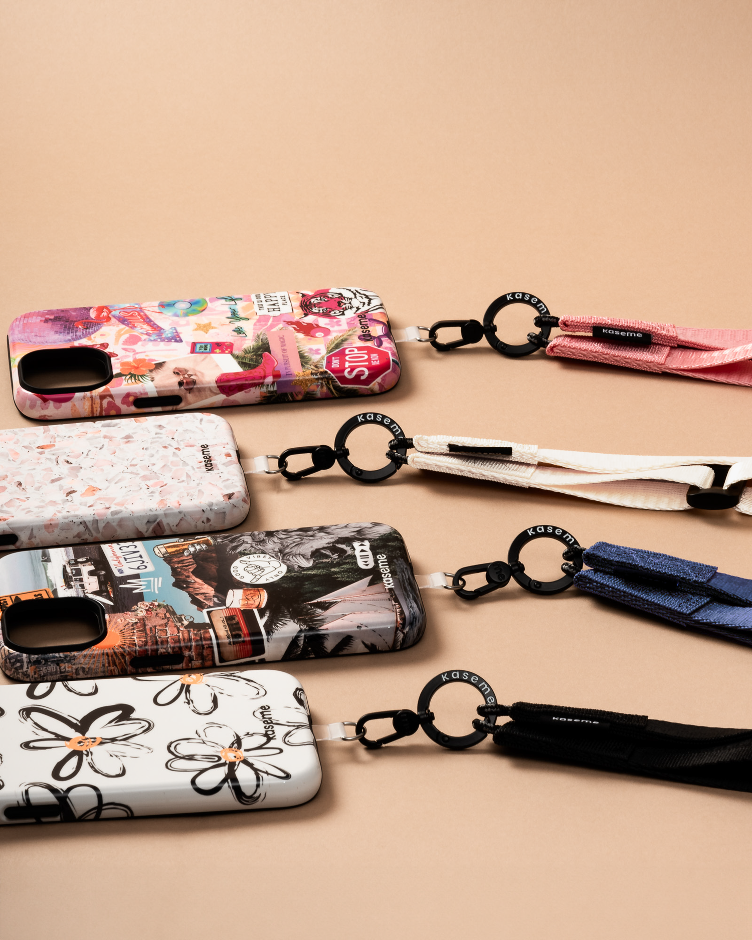 Notre ganse bandoulière pour téléphone est compatible avec tous nos étuis KaseMe ainsi qu’avec toutes les autres marques d’étuis de téléphone.