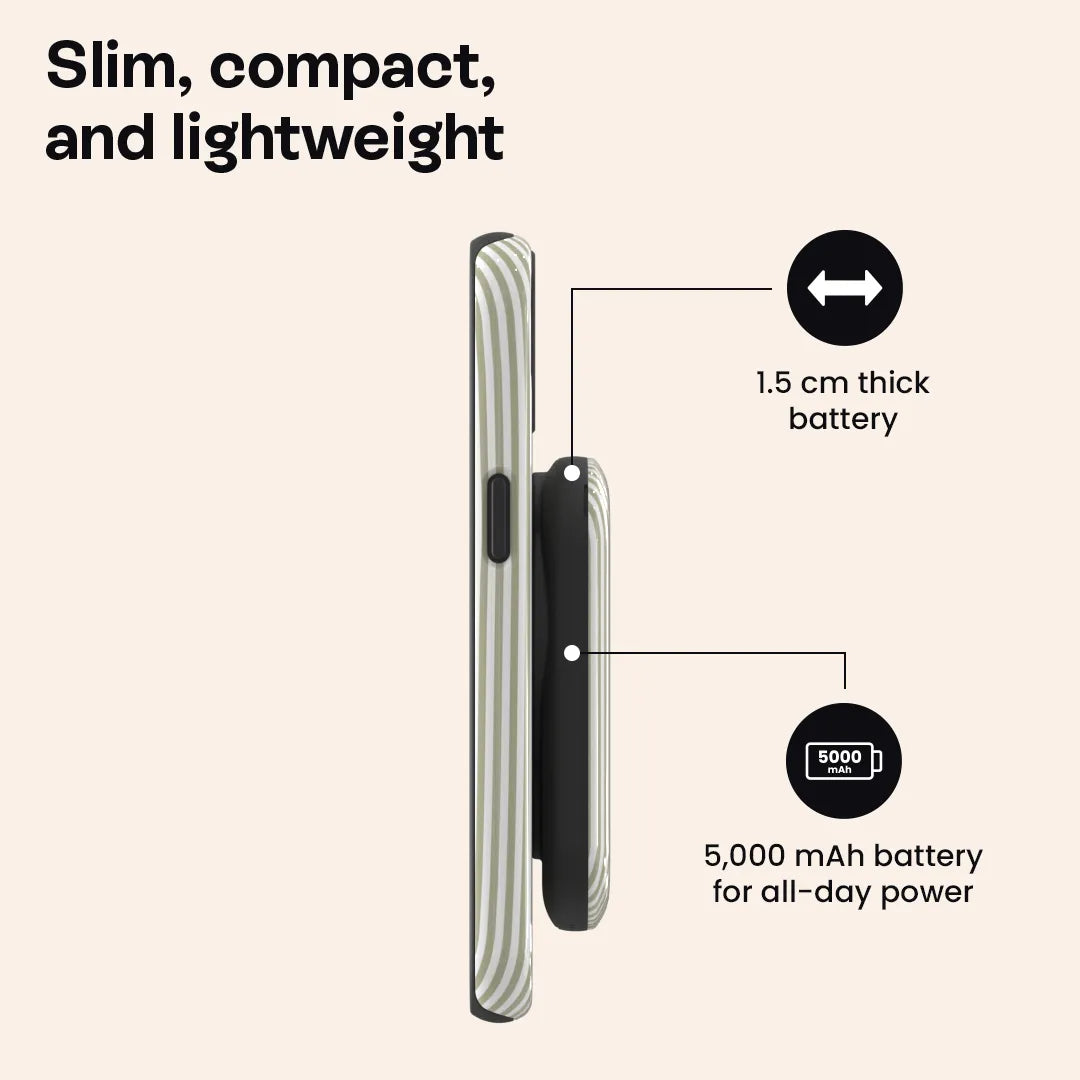 Avec son design mince et compact, le ChargePod tient confortablement dans ta main ou se glisse facilement dans une poche. Légèreté et praticité garanties.