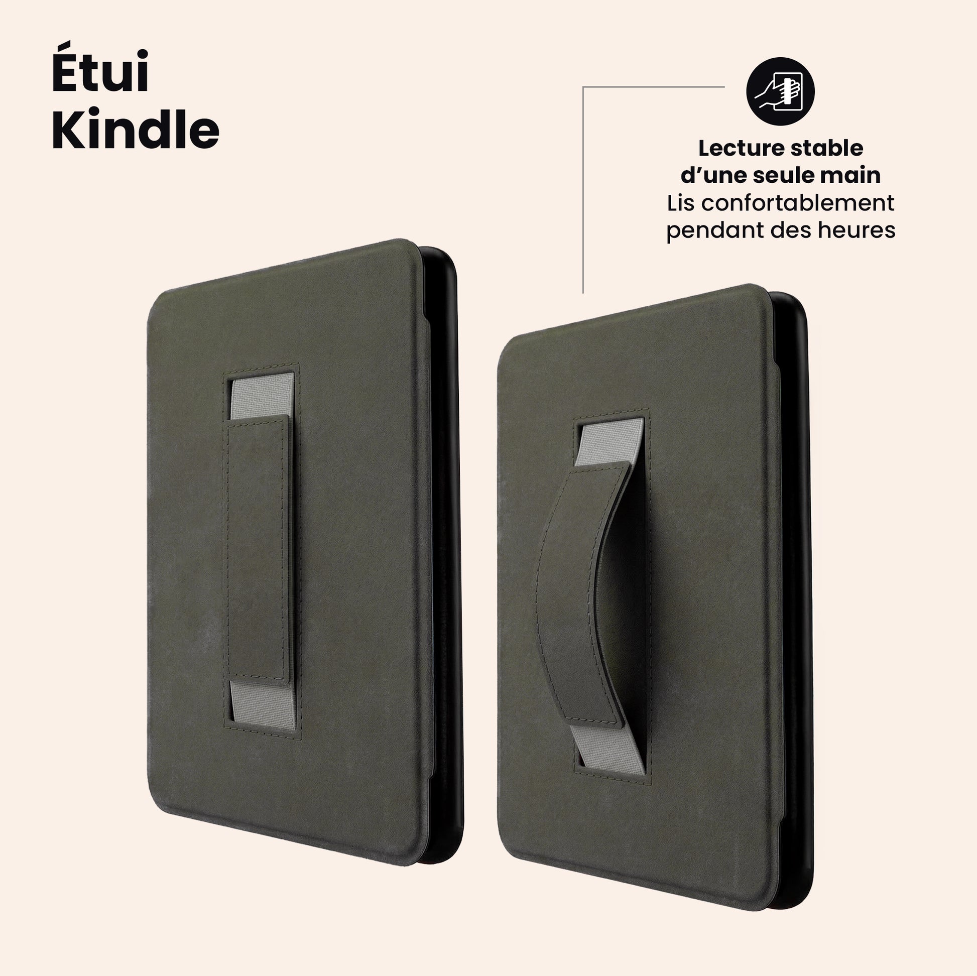 Oui! L’étui à Kindle est conçu pour offrir un confort optimal lors de longues sessions de lecture. Il est doté d’une sangle intégrée qui assure une prise en main stable et ergonomique d’une seule main, pour lire facilement pendant des heures sans effort. La rabat magnétique permet également de tenir la couverture collée en place sans devoir la tenir ouverte en tout temps.