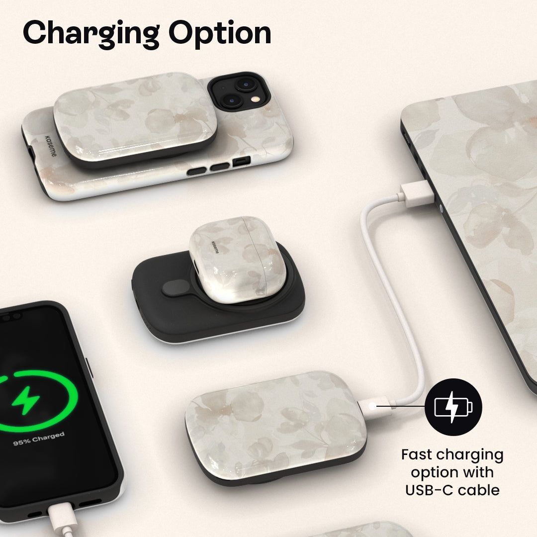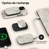 Le ChargePod s’adapte à ton quotidien en offrant trois options pratiques : la recharge par câble, la recharge sans fil Qi et la recharge magnétique MagSafe. À toi de choisir la solution la plus simple selon tes besoins.