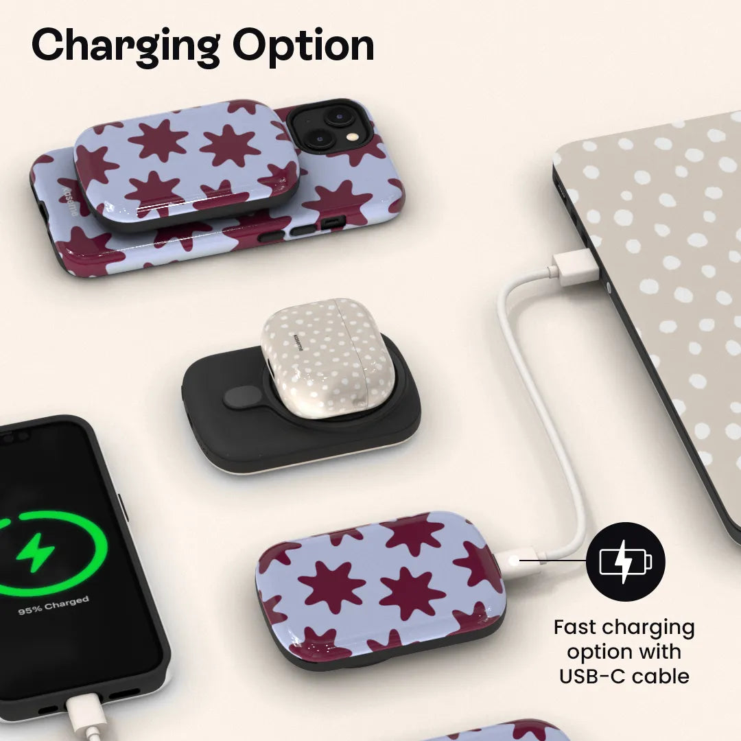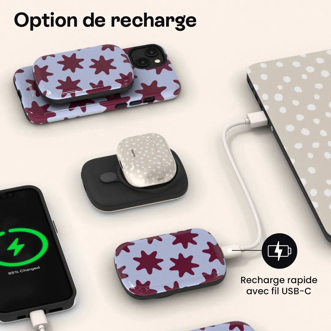 Le ChargePod s’adapte à ton quotidien en offrant trois options pratiques : la recharge par câble, la recharge sans fil Qi et la recharge magnétique MagSafe. À toi de choisir la solution la plus simple selon tes besoins.