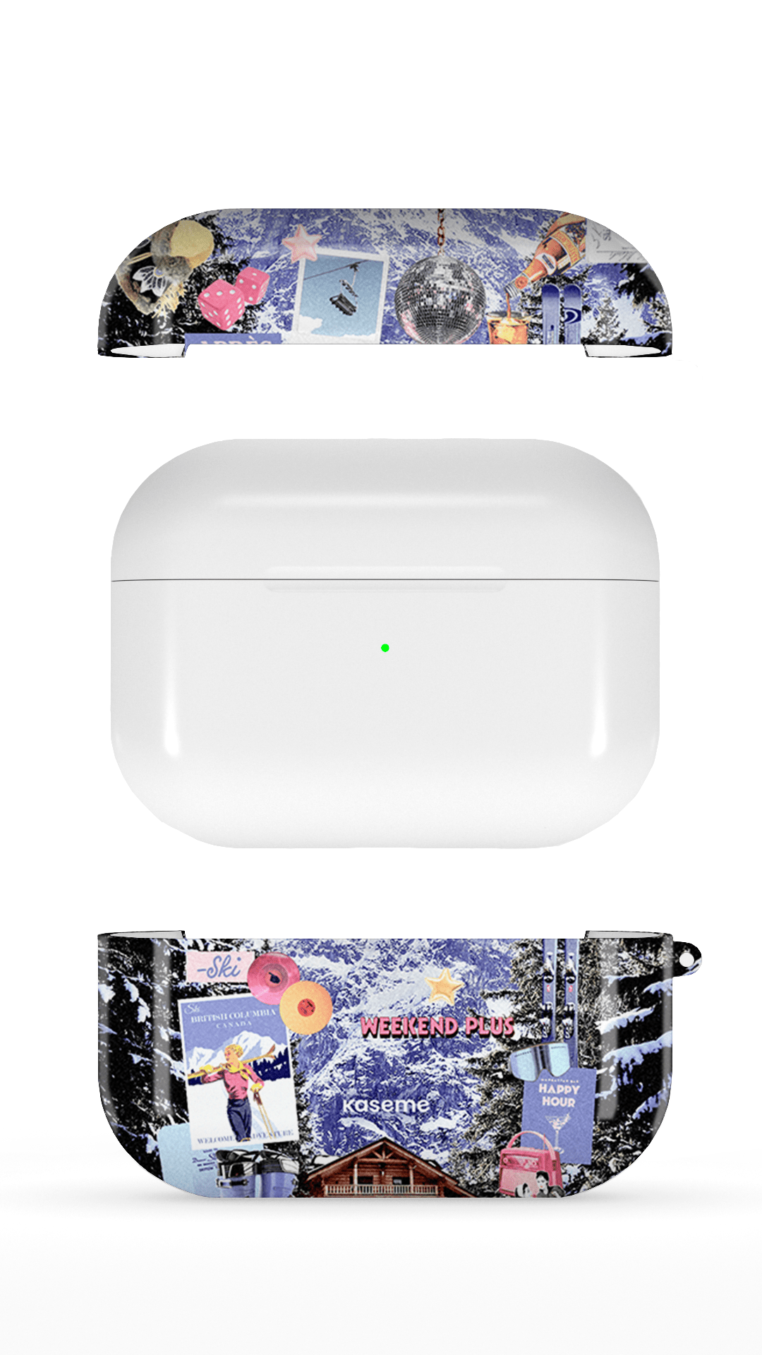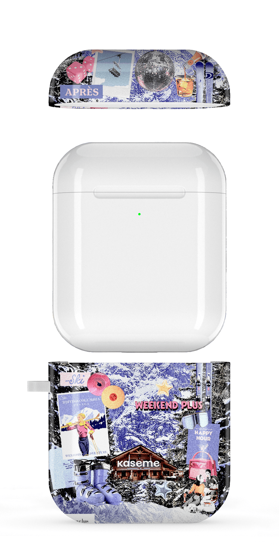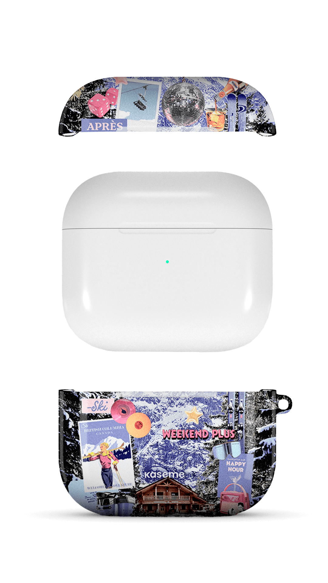 This case is a 2-piece shell that fits over the AirPods case, it does not replace the original case. Keychain rings are sold separately. The high-quality print will last for years and the protection offered by the case will prevent scratches and reduce damages in case of a fall.